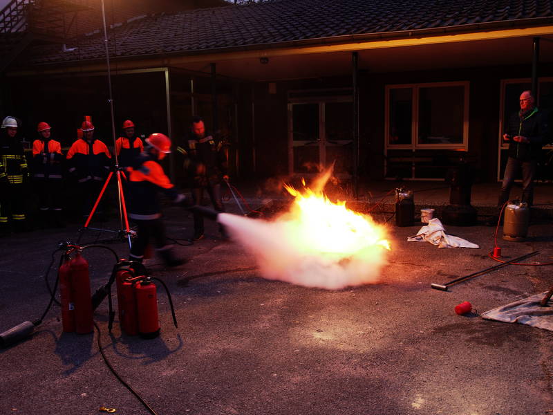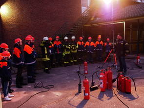 Am letzten Dienstag war die Firma H.-J. van Heesch Feuerschutz GmbH bei den Jugendlichen der Jugendfeuerwehr zu Gast. Vorgestellt wurden verschiedene Brandarten, deren Brandverhalten und mögliche Methoden zur Brandbekämpfung. Selbstverständlich hatte jeder Jugendliche dabei auch die Möglichkeit selber eine Brandbekämpfung mit Feuerlöschern durchzuführen. Das Highlight war dann ein Fettbrand, der versucht wurde, mit Wasser zu löschen sowie die daraus folgende "Fettexplosion".